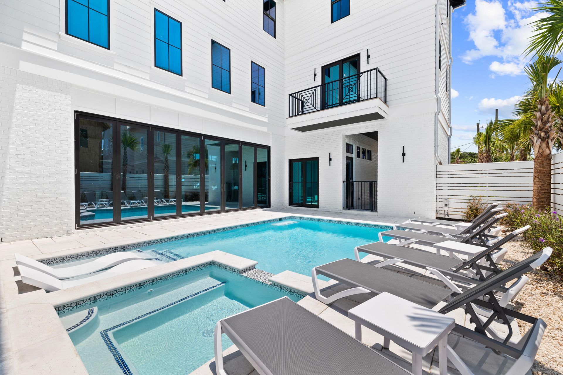 Perched above the shimmering turquoise waters of the Gulf of America in highly sought-after Inlet Beach, this nearly new coastal masterpiece delivers refined luxury just steps from the sand.Only 100 yards from public beach access, where over a half-mile of pristine white-sand shoreline stretches out before you, none of it private. This fully furnished, rental ready 6-bedroom, 7.5-bath residence masterfully blends architectural sophistication with effortless coastal elegance and offers the rare benefit of no HOA fees. Quite yet connected, enjoy the best of 30A while easily avoiding congestion with quick access to US 98 and points beyond. Spanning three expansive levels and centered around a private courtyard oasis, the home features an outdoor kitchen and elevator for effortless living. At its heart is a resort-style pool and spa, creating a secluded sanctuary ideal for both relaxation and unforgettable entertaining.Inside, curated high-end finishes -- including Moroccan tile, sleek modern fixtures, and natural wood ceilings -- set the tone for true coastal luxury. The inviting living area with a gas fireplace flows seamlessly into a chef's kitchen and generous dining space. A convenient first-floor guest suite, laundry, and powder bath complete the main level.The second level boasts a sophisticated media lounge with wet bar, multiple guest suites all with private baths, a custom bunk room with bath, a secondary laundry, and a charming Juliet balcony overlooking the serene courtyard.On the third level, the luxurious primary suite includes a spa-inspired bath with soaking tub, oversized shower, and dual vanities. A light-filled living space opens to a stunning balcony featuring a fireplace-- the perfect place for breathtaking Gulf sunsets. A dramatic staircase leads upward to a spectacular rooftop vantage point, offering panoramic Gulf views. The combination of ultra-close public beach access, Gulf views, resort-style pool and spa, spacious 6BR layout with bunk room, elevator, high-end finishes, and multiple entertainment areas commands premium nightly rates and delivers excellent occupancy. Rental numbers available upon request. Buyer to verify all dimensions and details.